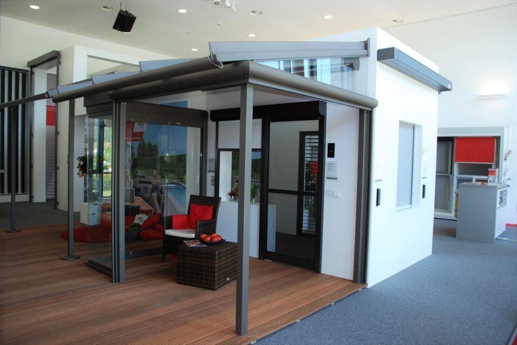 - Extras: optional mit integriertem Wind- und Sonnenschutz erhältlich, Vollant-Rollo zur senkrechten Verschattung und integrierte LED-Stripes (nur Typ W10)