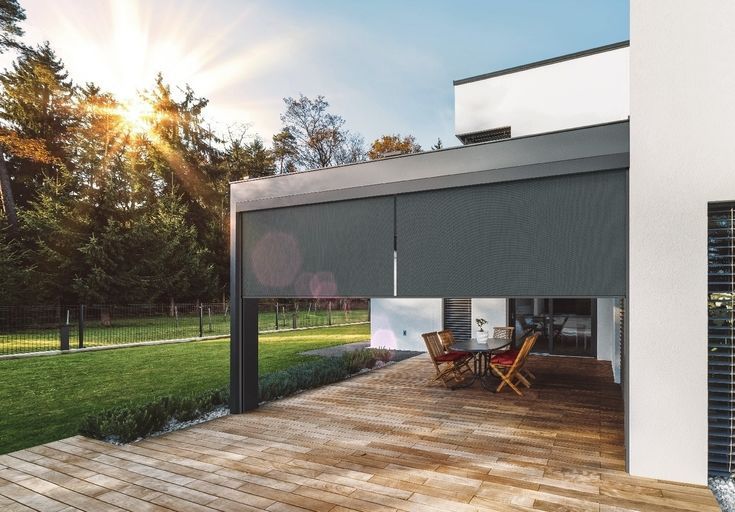 - Extras: optional mit integriertem Wind- und Sonnenschutz erhältlich, Vollant-Rollo zur senkrechten Verschattung und integrierte LED-Stripes (nur Typ W10)