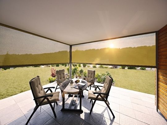 - Angenehmer Sichtschutz in Kombination mit Seiten-Markise oder Volant-Rollo